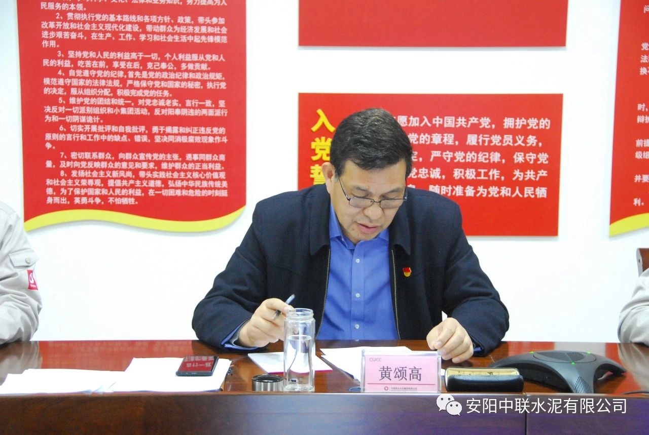 按照中國聯(lián)合水泥黨委關(guān)于認(rèn)真開好2020年度民主生活會通知要求,2月24日上午,安陽中聯(lián)2020年度黨員領(lǐng)導(dǎo)班子民主生活會在公司黨員活動室召開。中國建材股份黨委常委、執(zhí)行董事、副總裁,中國聯(lián)合水泥黨委書記、董事長崔星太通過視頻連線督導(dǎo)會議并作點(diǎn)評講話。中國聯(lián)合水泥黨群工作部主任侯萍、紀(jì)檢監(jiān)察室副主任董治及安陽中聯(lián)黨委委員、領(lǐng)導(dǎo)班子成員參加會議。安陽中聯(lián)黨委書記、總經(jīng)理黃頌高主持會議。